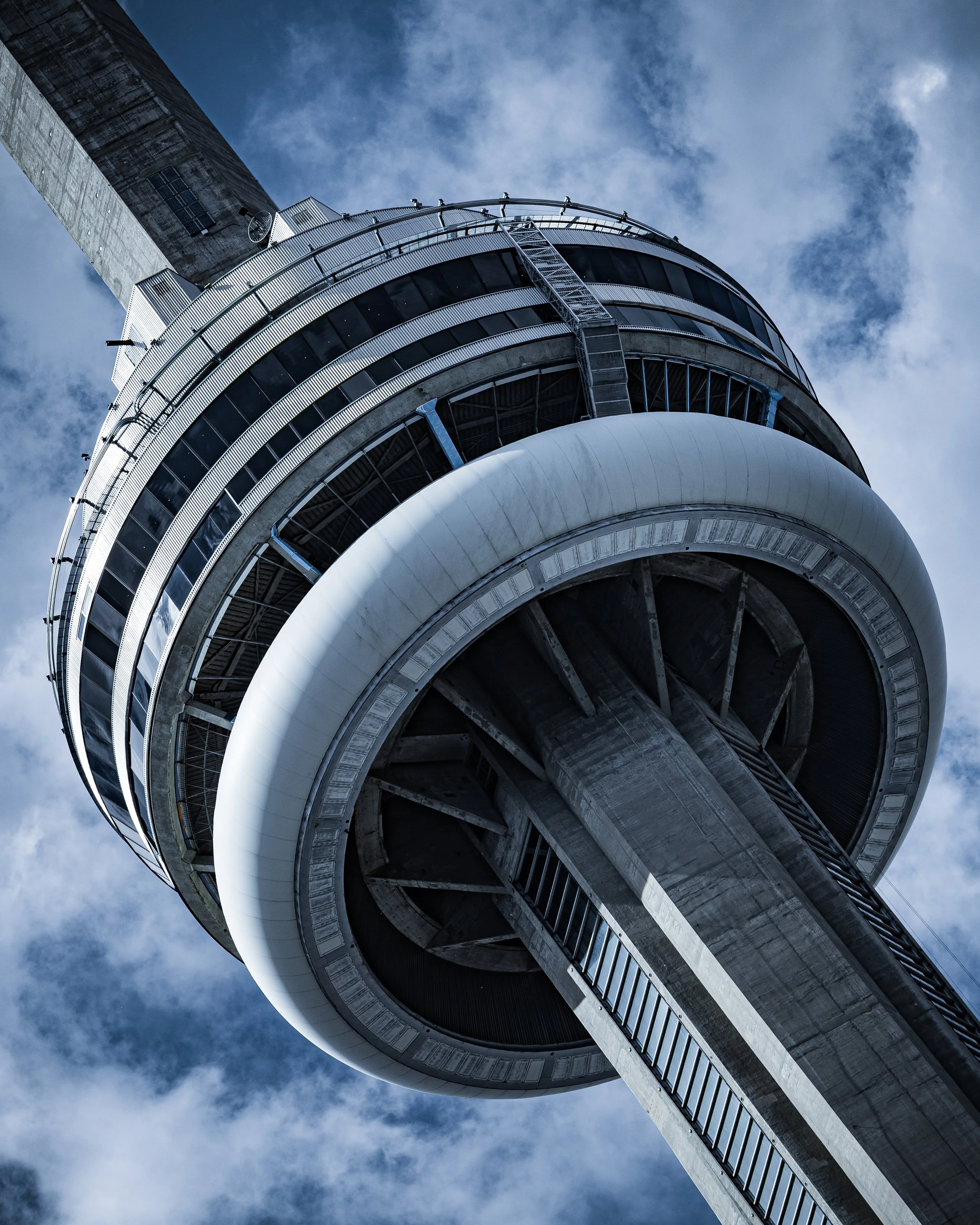 clouded sky would in the afternoon. The added detail of rocks and boats also helped make the afternoon sky seem more palatable. I realize that the photograph would have looked way better if I arrived during sunrise but I was too lazy to get up at 3am and make the two hour drive. The results that I got were pretty good but nothing that I would necessarily print on an eight foot canvas. Walking back to my car I was able to get some banger photos of the local harbor with all the boats and Canadian flags. These photos turned out really well and some of these will be printed in the near future. I still wanted another angle of the tower knowing full well that I could really get some super professional photos if I was close enough to the observation deck..so I got back in the car and headed downtown.I mentioned before that the Canada National Railroad built the tower and today the railroad company delivers more than 250 billion Canadian dollars (193 billion US) over 20 thousand miles across Canada and The United States. An article was written comparing Union Pacific Railroad to Canada National and considered both of them as “core holdings in a long-term portfolio.”
